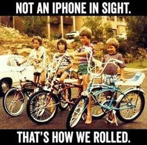 We would run around outside and play for hours on end. Riding our bikes everywhere, playing kickball and chasing down the ice cream man!! Drinking water out of the garden hose and even riding in the back bed of a pick-up truck, and you know what? We lived to tell about it!
